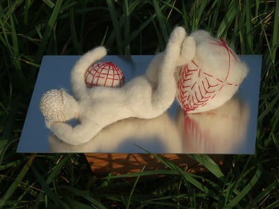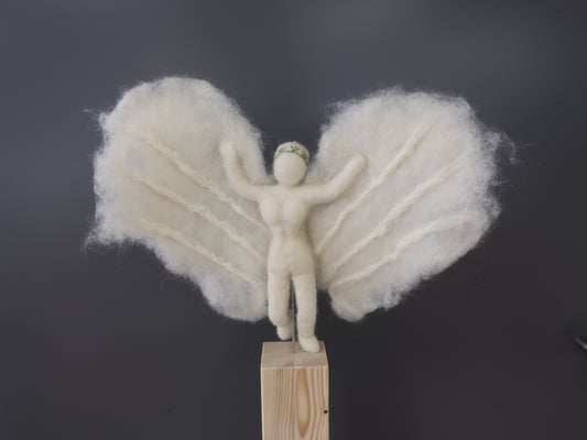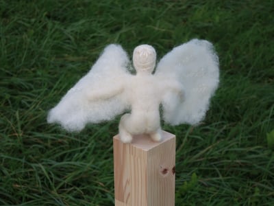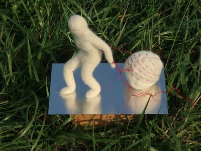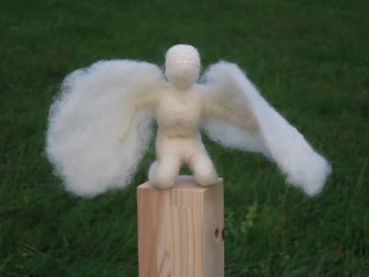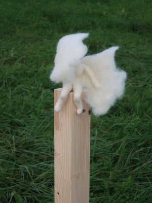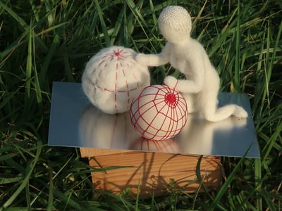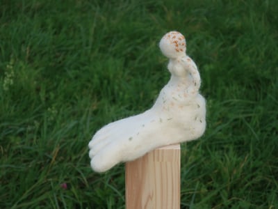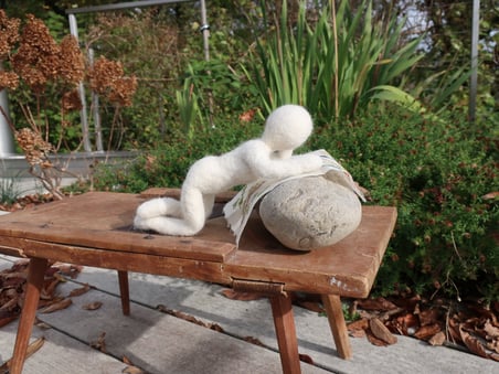 Figur aus der Wolle vom Schwarznasenschaf und Frucht der Kugeldistel