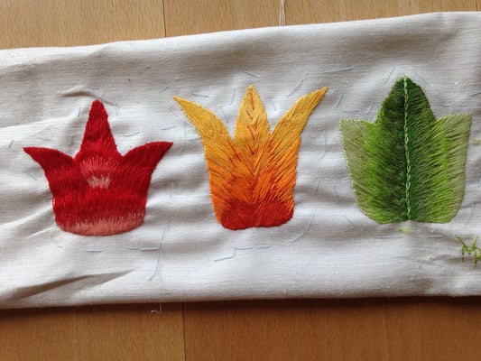 Seide, Wolle u Baumwollgarn auf Druckfilz
