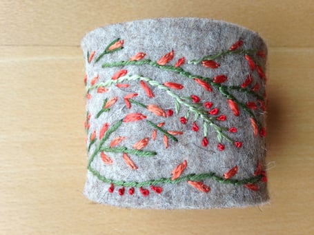 antike Seidenfäden (1900-1920) und silber Passing auf Industriefilz