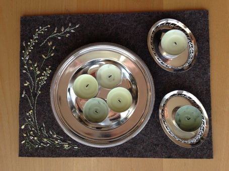 mit alter Teelichtschale und Platz für Glas oder Tasse